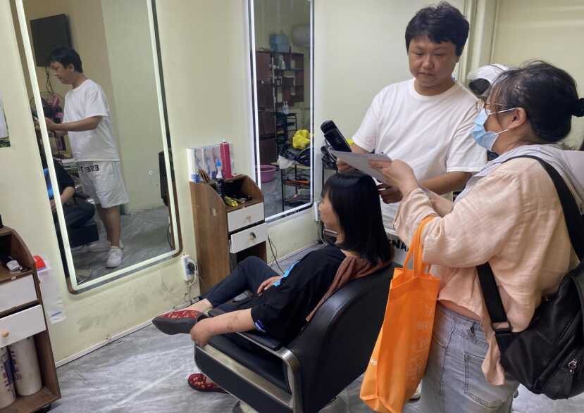 图为向商户宣传现场
