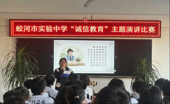 为深入贯彻立德树人根本任务,加强校园诚信文化建设,引导学生树立正确的诚信价值观,近日,蛟河市实验中学精心举办了诚信教育主题演讲比赛。