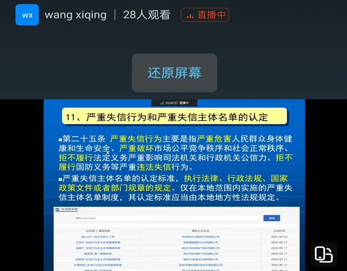 会上,吉林大学商学院副教授王希庆应邀为新任职的副县(局)级领导干部解读《吉林省社会信用条例》,并进行了线上直播。各县(市)区、开发区社会信用体系建设牵头部门和市直部分单位等机关干部参加了本次培训。